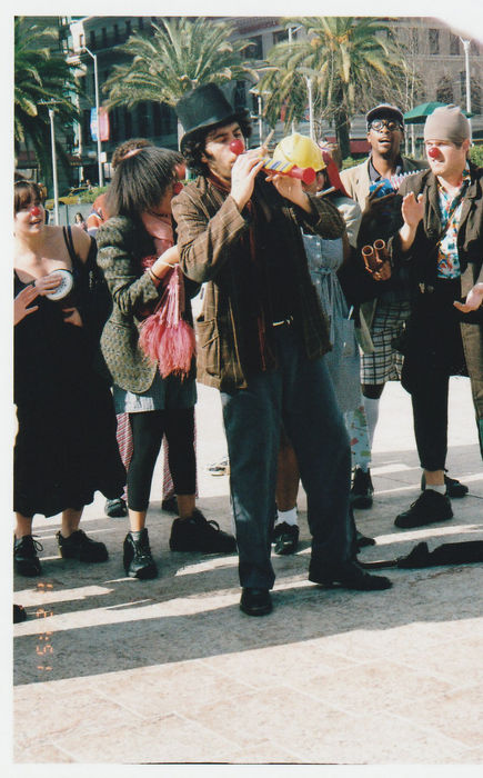 Site-Seeing explores the myth of America in the style of theatrical clown (a synthesis of Beckett and Fellini)